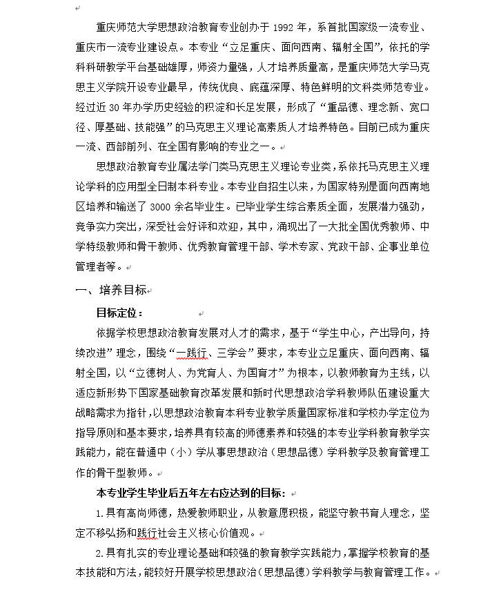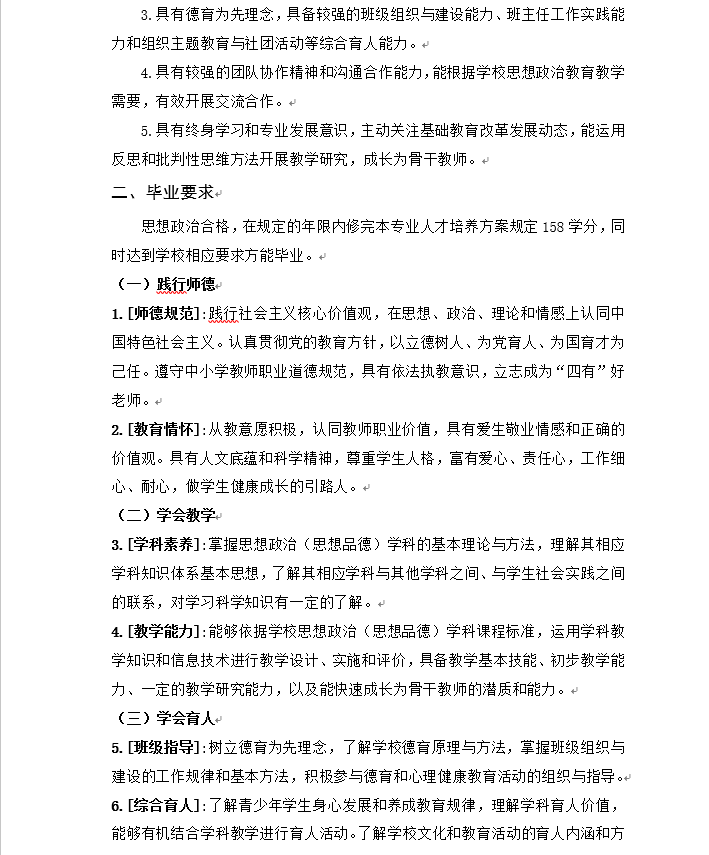太阳集团21382021级思想政治教育专业(师范)本科人才培养方案