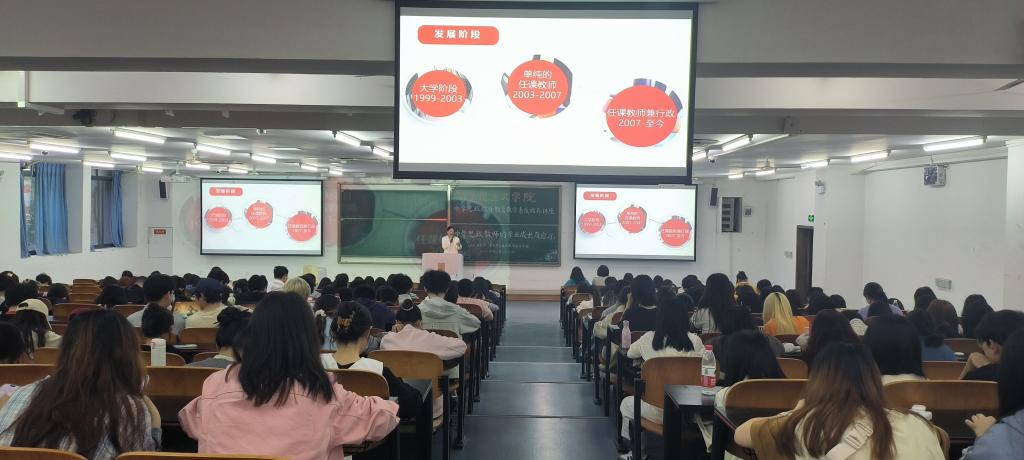 任显华老师的讲座生动有趣、引人入胜、逻辑严密,以基层一线教师为视角,给同学们在介绍实习期间与应聘期间所需教育教学相关素养能力基础上,提出培养方法,使现场同学受益匪浅。