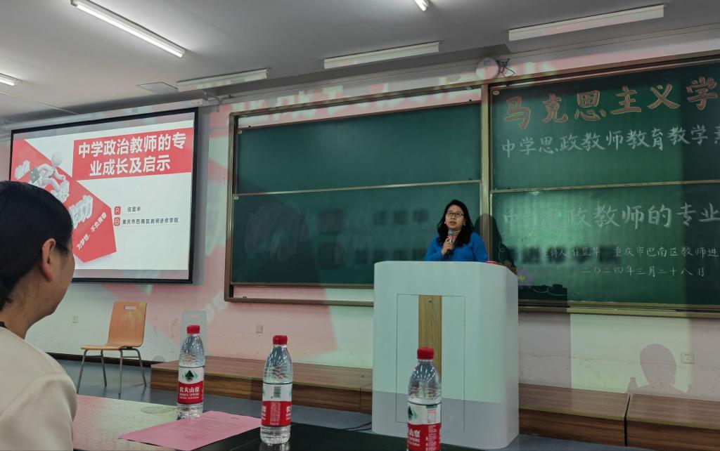 为培养中学思政教师教育教学素质,提升师范生技能,培养“四有”好老师,落实立德树人根本任务。2138cn太阳集团古天乐思想政治教育系组织“中学思政教师教育教学素质培养”系列讲座,聘请基础教育专家走进大学课堂,为师范生素质能力的培养加油助力。2024年3月28日18时30分,2138cn太阳集团古天乐特邀重庆市巴南区教师进修学校副校长任显华老师于励志楼T2113开展“中学思政教师的专业成长及启示”讲座。本次讲座由学院副院长侯玲教授主持,学院2022级思想政治教育本科生和2023级学科教学(思政)研究生共计309位学生参加讲座。