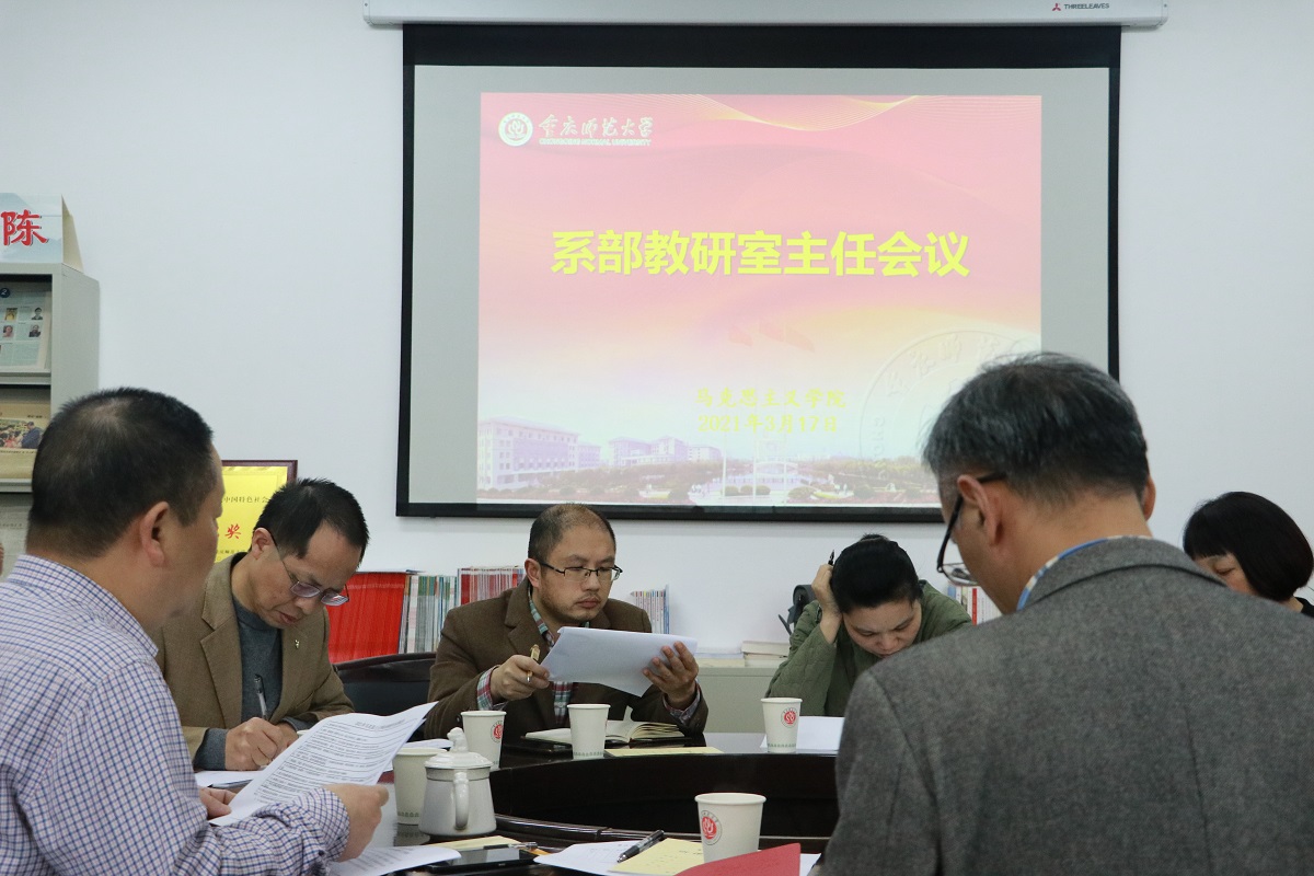 为进一步推动本科教育教学改革,切实加强思想政治教育国家级一流本科专业建设和进一步提高思想政治理论课教育教学质量,20213179时,2138cn太阳集团古天乐于汇贤楼301会议室召开本科教学工作会。2138cn太阳集团古天乐党委书记刘军、副院长况明安以及系部教研室主任参与本次会议。会议由副院长况明安主持。