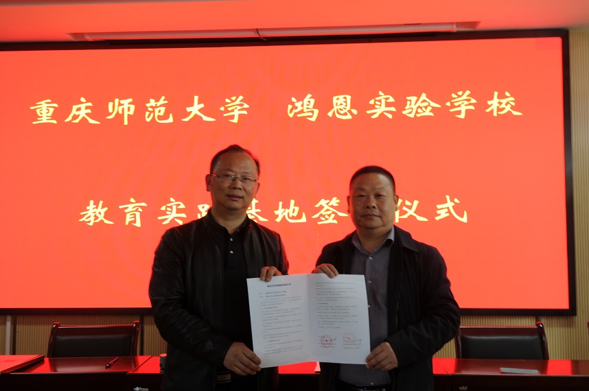 2021年4月26日,我院与重庆市鸿恩实验学校达成合作,签署教育实践基地协议。学院副院长况明安、思想政治教育系副主任郑瑜作为学院代表参加签字仪式。