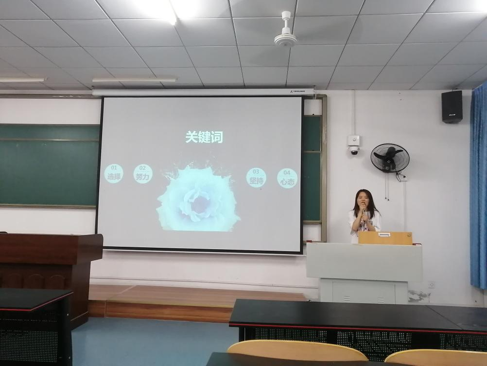 考上华中师范大学的王小桥从如何协调学生工作和考研的关系、如何调整考研复习中的压力的角度进行了分享,结合考研经历,她认为“选择比努力重要”、“只要愿意,一切都还来得及”、“再坚持一下,再往前走一步”,考研过程中的这三点非常重要,希望18级的学弟学妹们轻装上阵,坚持到底;考上国防科技大学的张恺悦从“选择”、“努力”、“坚持”、“心态”四个关键词向我们系统传授了考研学校及专业的选择、考研复习的时间安排、考研复习方法等,她认为一定要以“不留退路,才有出路”的态度决胜考研。考上电子科技大学的杨胜萍、考上重大的易双从“三个选择”即保持自信、及时行动和总结分析,“两个方法”即合并同类项、找主语延伸,“一个信念”即坚持到底等三个方面向我们分享了考研专业课程学习、心态调整等重要问题。保研山东大学的胡开英以“推免那些事儿”为主题,从关于推免资格、推免途径(夏令营、预推免和九推)、推免心态调整及其与考研的协调三个方面为同学们进行详细介绍。五位成功考上研究生的学姐都有各自的特点:王小桥系学院主要学生干部,平时学生工作任务多,压力大;张恺悦英语基础不好,但是为了圆自己的军校梦,一直坚持努力学习;杨胜苹和易双两位同学平时成绩中等,基础一般,但通过自己的坚持和努力也圆了自己的研究生梦;胡开英则是学霸,但在保研的路上,也是一波三折。通过这些学姐们的分享,18级的同学们更客观的了解了考研的过程、以及考研复习的方法和一些资源,同时更加坚定了自己的考研目标,坚信,只要自己能够坚定目标、坚持复习、调整好心态,明年今日,定能圆梦。