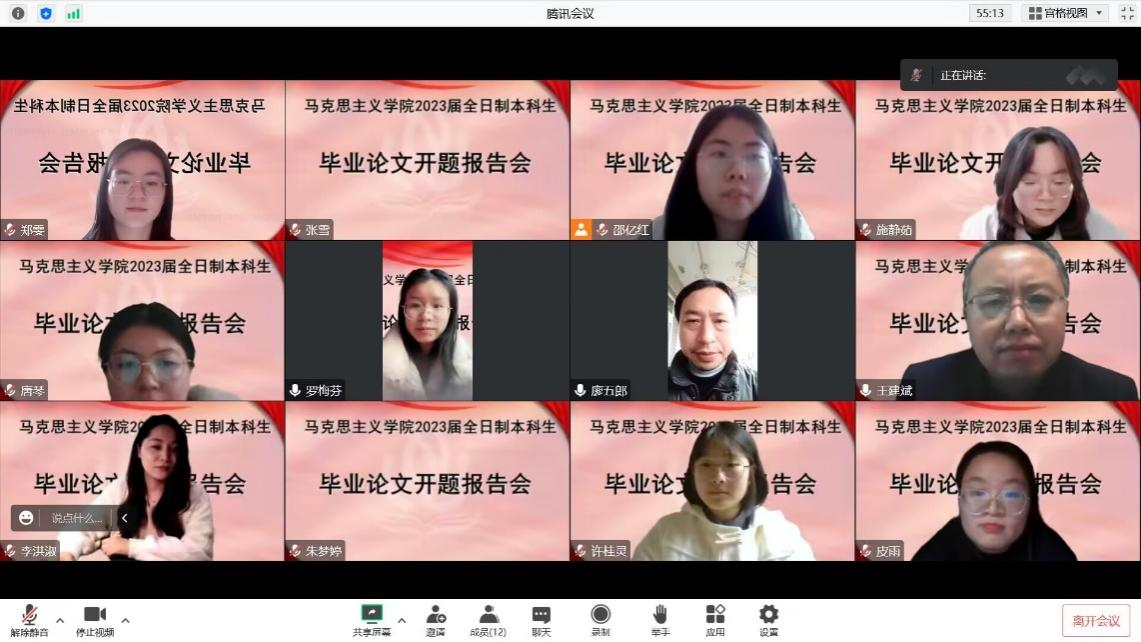 为强化本科生过程管理,提高本科生培养质量,2023年1月4日14:30,我院2019级本科生开题报告会在线上举行,2019级全体指导老师和本科生参与本次报告会。在各组开题报告会正式开始前,我院副院长侯玲教授组织全体答辩委员召开开题答辩集中会,讲解开题答辩需要注意的各项事宜。王建斌副教授随后在会上发言,介绍了开题报告会流程及其他相关注意事项。