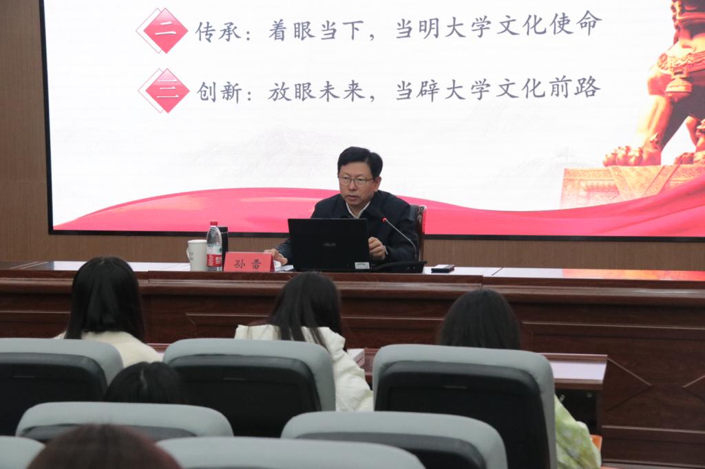 讲座中,孙雷教授聚焦“大学文化在传承中不断发展创新”的时代主题,从回望过去、着眼当下、放眼未来三个方面阐述了当今时代背景下大学文化守正创新的理论逻辑和实践路径。