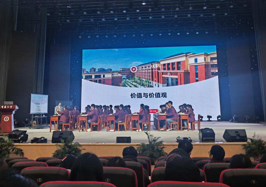 黎老师以“重庆五一旅游火爆现状”相关视频为课程导入,创生情境、设置线索,借“从今年火爆的旅游市场了解市场调节”“从‘人在囧途’的旅游体验认识市场缺陷”“从‘整治旅游市场乱象’理解市场体系”三个议题,循循善诱,阐明了要充分发挥市场在资源配置中的决定性作用,从而提高人民生活水平。陈老师则围绕“价值与价值观”这一中心话题,以K396次列车被困落坡岭站为案例,先后分析“何谓价值”“何谓价值观”,落脚于社会主义核心价值观,对青年学生起到积极的思想引领作用。